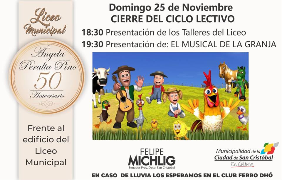 50° Aniversario del Liceo Municipal 23 noviembre, 2018 Se celebra en el marco del cierre del ciclo lectivo anual, el domingo a partir de las 18.30hs en frente del edificio del Liceo.