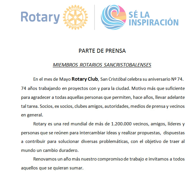 El 19 de mayo la institución de servicio de nuestra comunidad cumplió 74 años de vida, por eso nos acercamos a uno de los miembros más veteranos de la entidad, para que nos comente la actualidad de la misma, las actividades realizadas, los próximos proyectos y hace la invitación a todo el público a sumarse.