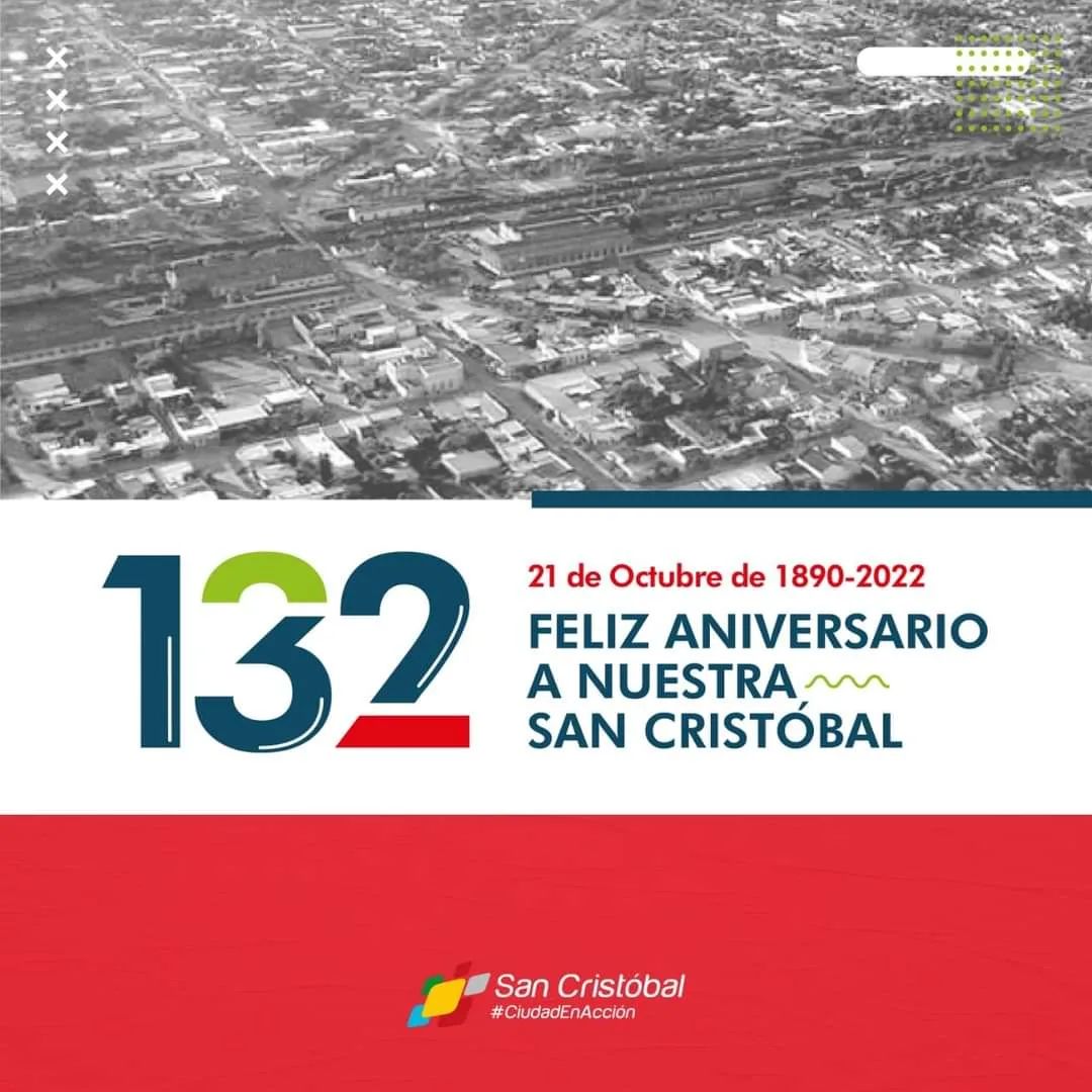 Acto oficial por los 132 años de San Cristóbal 24 octubre, 2022 En la previa al desfile de instituciones, se realizó el acto oficial por los 132 años de vida de nuestra ciudad. En la parte formal del evento destacamos la palabra del Intendente Horacio Rigo.