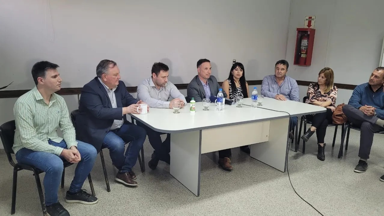 Funcionarios provinciales, encabezados por el Ministro de Obras Públicas Lisandro Enrico, hablaron sobre el comienzo de la obra de retechado del hospital local.