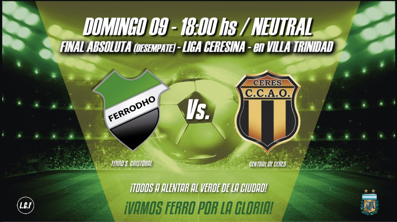 Luego de la negativa del Club Unión Cultural y Deportiva San Guillermo de prestar su cancha en el horario estipulado, la sede de la final absoluta de la Liga Ceresina de fútbol termina siendo el «Rafael Pepa» de Libertad de Villa Trinidad, el domingo a las 18hs.