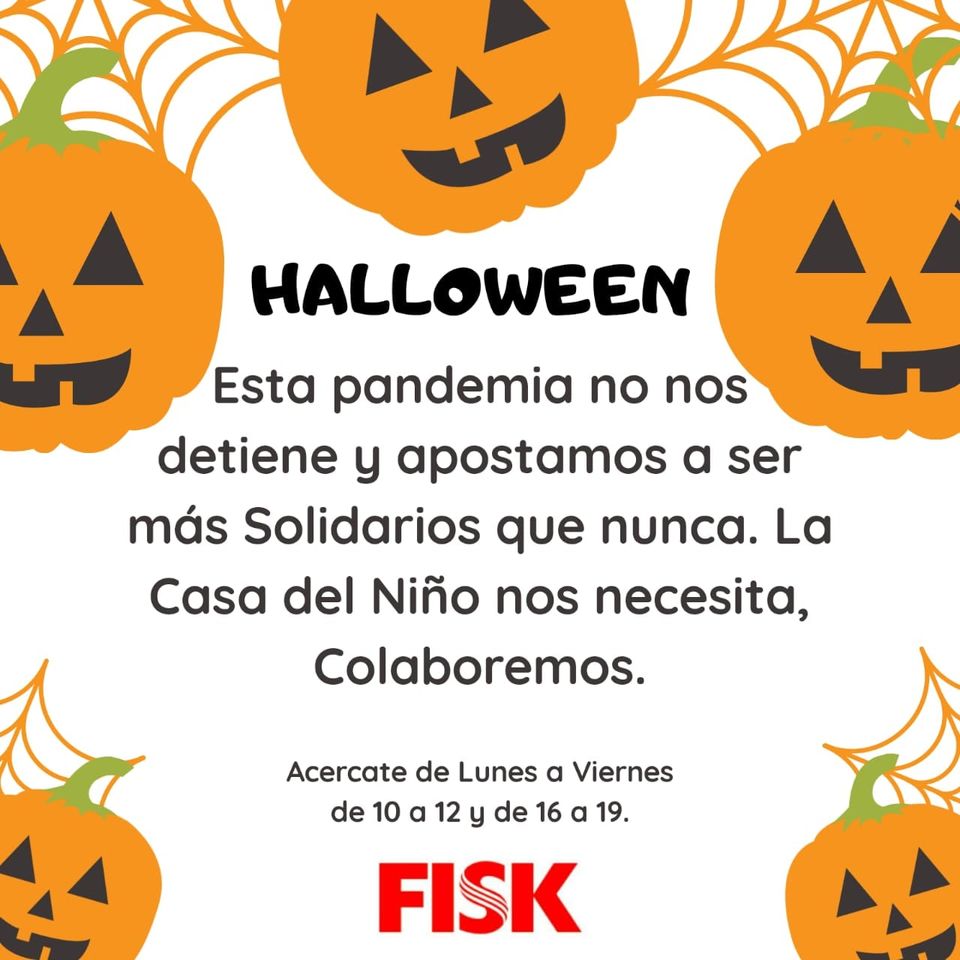 Campaña solidaria en FISK 20 octubre, 2020 El Instituto FISK de inglés americano ya comenzó con su tradicional campaña «Halloween Solidario». La misma consiste en colectar alimentos no perecederos, destinados a la Casita del Niño de nuestra ciudad.