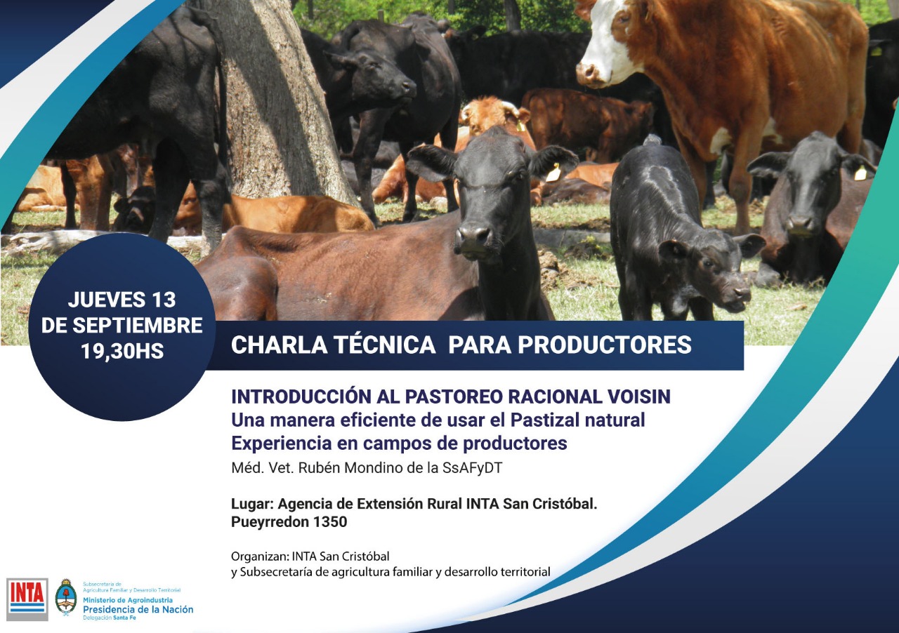 Charla técnica en INTA 13 septiembre, 2018 Charla técnica en INTA, con presencia del medico veterinario Ruben Mondino, disertando sobre pastoreo racional voisin