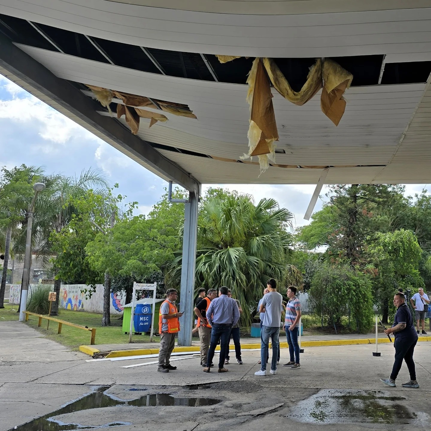 Luego del temporal de intensas ráfagas que se dio en nuestra ciudad durante la madrugada, el Senador Felipe Michlig y el Diputado Marcelo González se pusieron en contacto con personal de la Guardia Civil de la Provincia para realizar un relevamiento de la situación. Esta tarde, el Director Provincial de la Zona Norte de Protección Civil, Daniel Iglesias, y el Diputado Gonzalez, estuvieron en la terminal de ómnibus con el Secretario de Obras Públicas Municipal Sergio Bustos, e integrantes del área de servicios. Desde el próximo lunes se trabajará en los trámites de rigor y los pasos a seguir para el arreglo de la infraestructura dañada. Se destacó también la presencia del Secretario de Gobierno Ramiro Muñoz, funcionarios locales, e integrantes del equipo de trabajo provincial.
