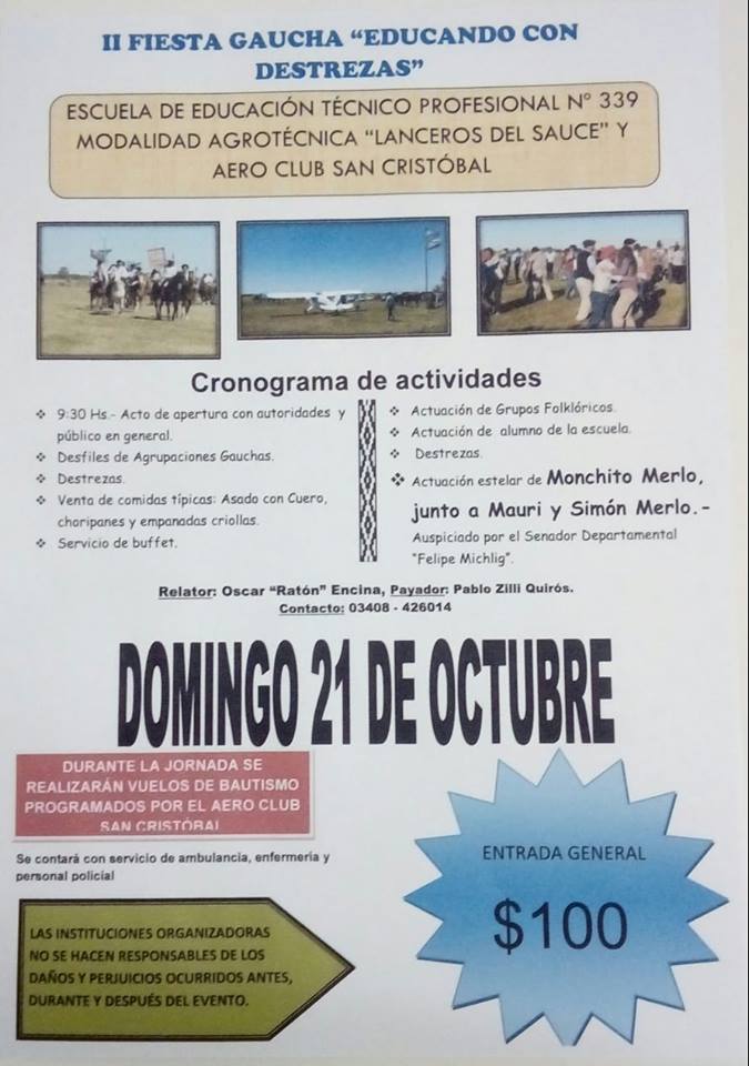 «Educando con destrezas» 9 octubre, 2018 Fiesta gaucha organizada por la escuela N° 339 «Lanceros del Sauce», el próximo 21 de Octubre.