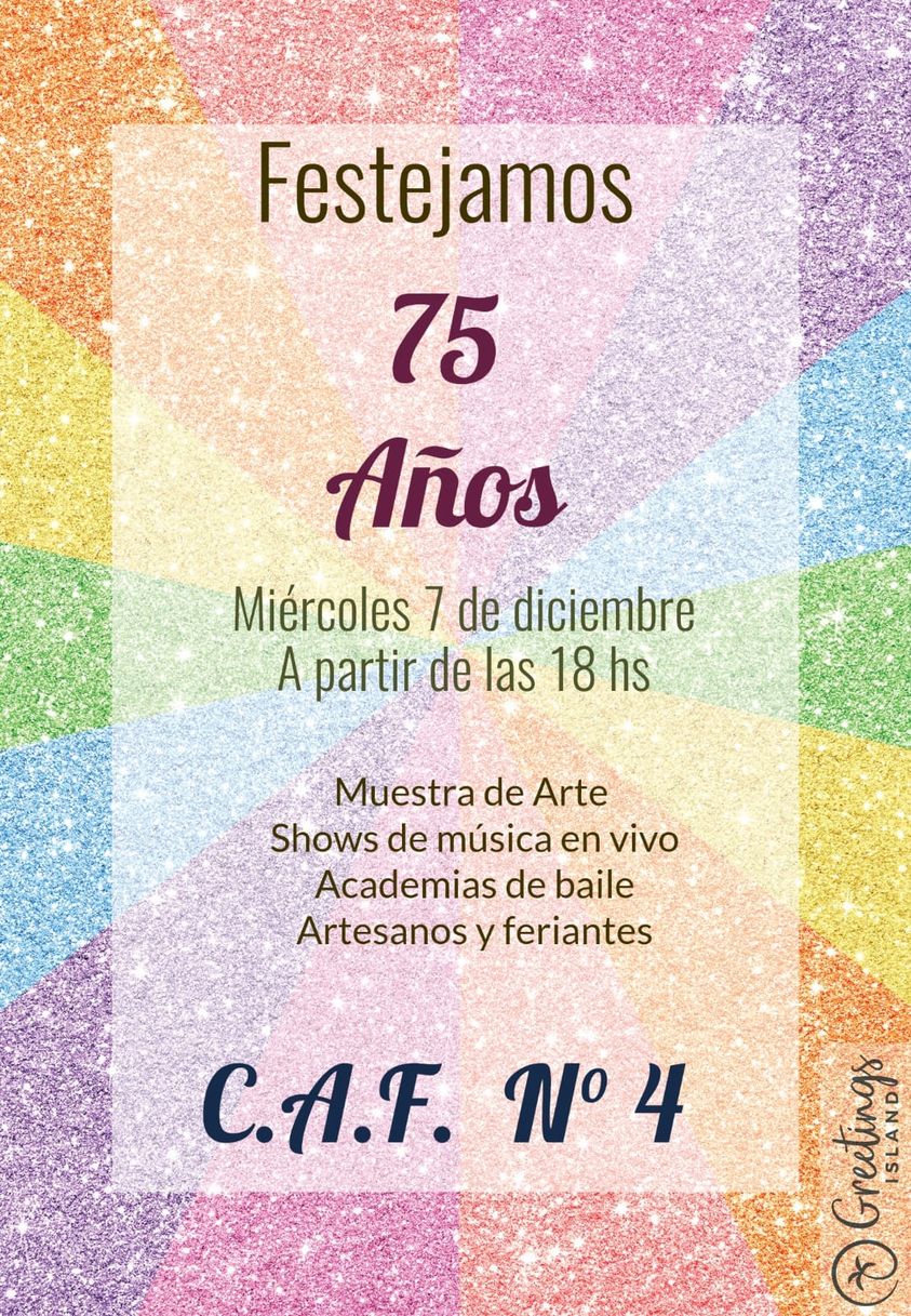 El C.A.F. se prepara para celebrar sus 75 años 29 noviembre, 2022 El Centro de Acción Familiar de nuestra ciudad cumple 75 años el próximo 7 de Diciembre. Para esta ocasión, la institución prepara varios festejos especiales, e invita a la comunidad a sumarse a la celebración.