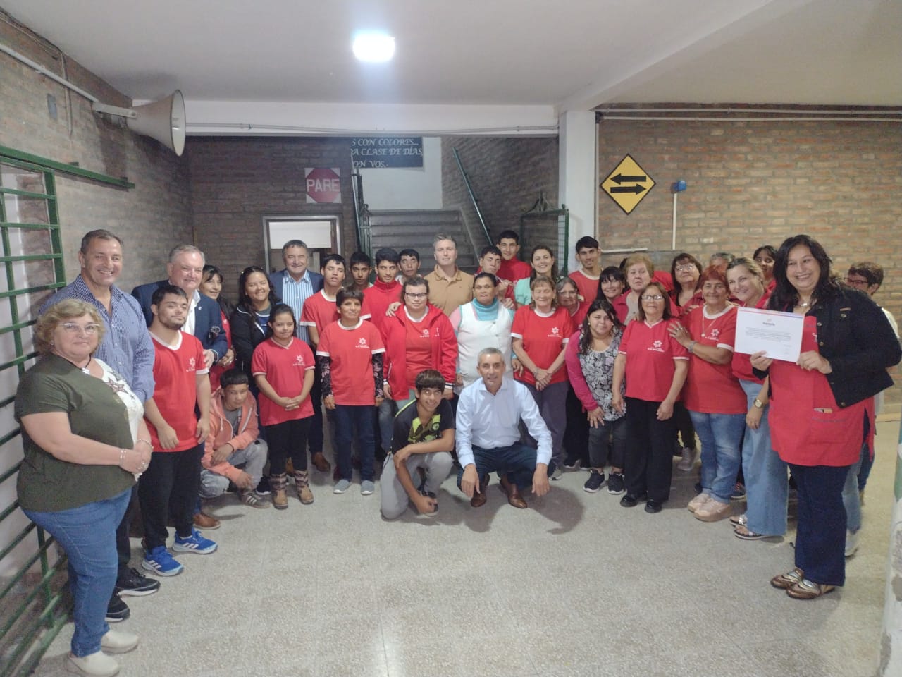 El senador provincial Felipe Michlig, el diputado Marcelo González y el delegado de la Región IX de Educación, Horacio Rigo, visitaron la Escuela Primaria para Adultos N° 2514 Domingo Faustino Sarmiento de la ciudad de San Cristóbal, donde se concretó la entrega de un aporte de $20.783.860 del Programa de Fondos para Atención de Necesidades Inmediatas (FANI), destinado a obras de remodelación y refacción de los núcleos sanitarios de planta baja.
