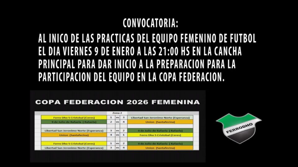 Ferro comienza con el fútbol femenino 8 enero, 2026 Desde la institución comunican que este viernes arrancan las prácticas en la cancha principal.