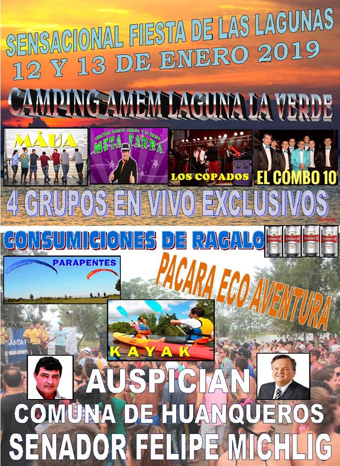 Este fin de semana en el camping AMEM de laguna «La Verde», se va a llevar a cabo la fiesta de las lagunas. Además de shows en vivo, va a haber distintas actividades, entre ellas exhibiciones de vuelos de parapente y actividad en kayak.