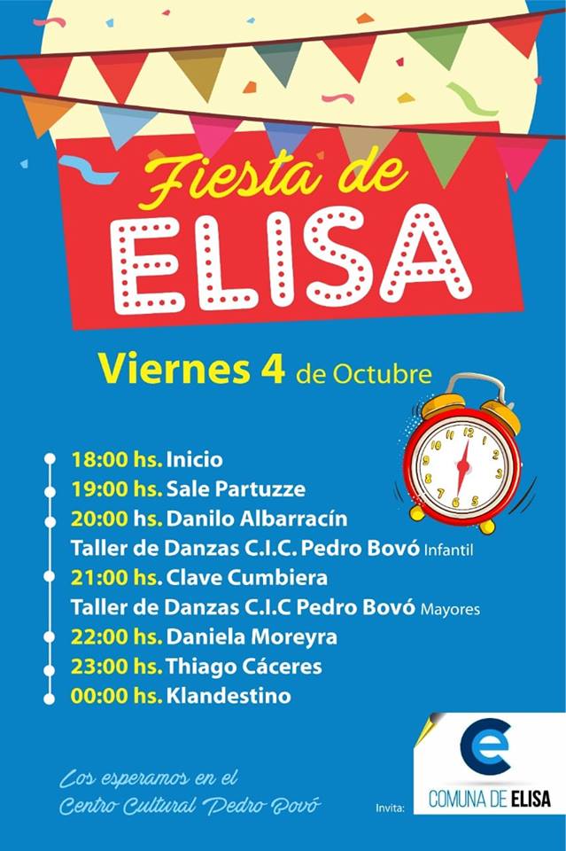 Mañana se celebra un nuevo año de este evento tradicional para dicha comunidad, con diferentes actividades y espectáculos musicales. Por esta razón, el Presidente de Comuna Abel Saluzzo hace la invitación no sólo a la localidad de Elisa sino también a toda la región.