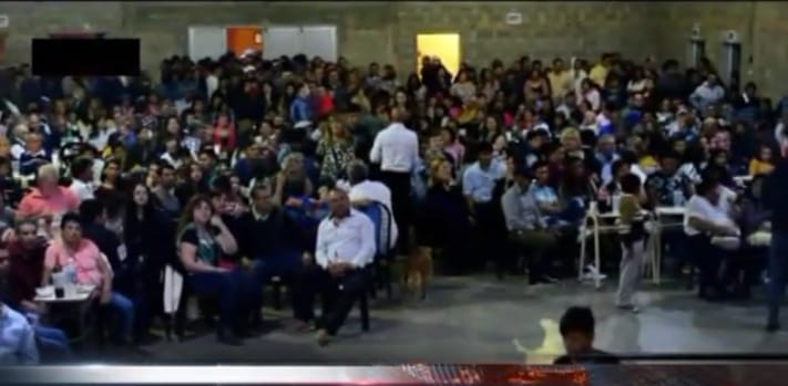 Fiestas Patronales de Huanqueros 8 octubre, 2018 Acto oficial de la fiesta con la palabra de Roque Ferreyra y Felipe Michlig, en el Salón Comunal «Los Abipones».