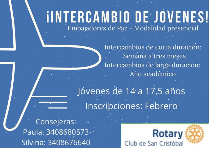 El Rotary Club abrió las inscripciones para el programa de intercambio de estudiantes, volviendo a la modalidad presencial. Durante este mes de Febrero, los jóvenes de entre 14 y 17 años interesados pueden hacer consultas para más detalles en la entidad rotaria.