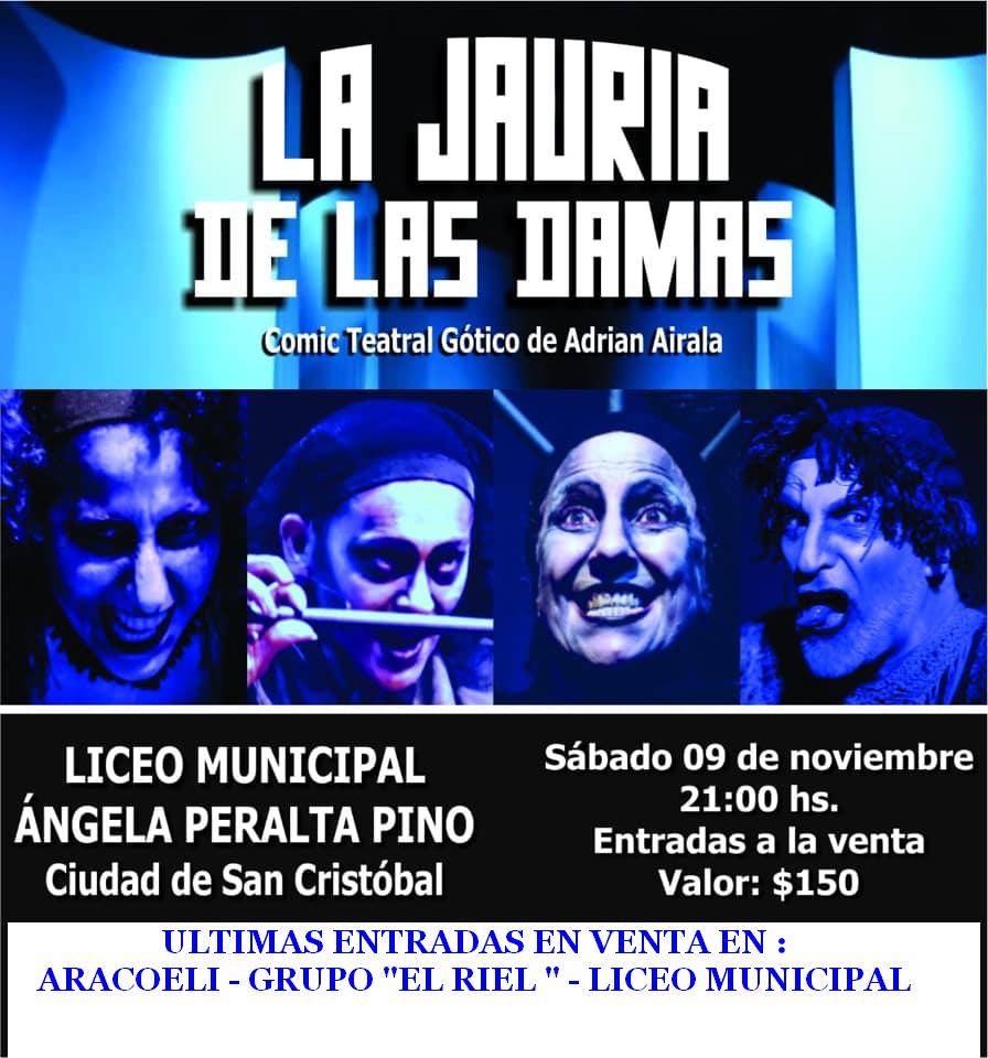 El Liceo Municipal abrirá sus puertas este sábado a partir de las 21hs para presentar «La Jauría de las Damas», una obra reconocida a nivel nacional y con presentaciones en Sudamérica. Los amantes del teatro pueden adquirir sus entradas en el Liceo a un costo de $150.