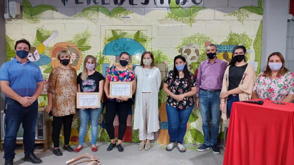 La semana pasada el Área de Cultura del municipio reconoció a Paola Pesquedua y a Anabela Porcel de Peralta, 2 artistas locales que realizaron el mural ubicado en la esquina de Hipólito Yrigoyen y Belgrano en homenaje a las personas que trabajaron durante el 2020 contra la pandemia.