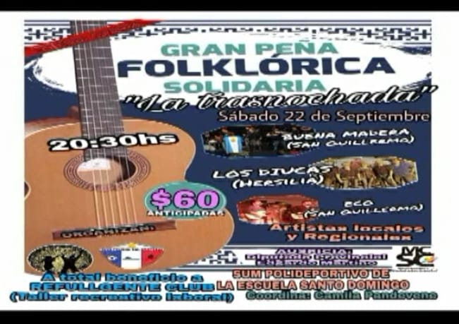Peña folklórica solidaria 12 septiembre, 2018 Se viene la peña folklórica «Las trasnochada»,a beneficio del grupo ReFullGente.