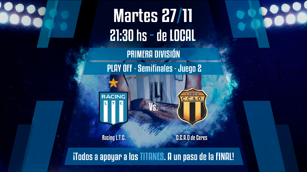 Racing va por la final 27 noviembre, 2018 Esta noche a partir de las 21:30hs en el Amancio Fuentes, Racing recibe a Central Argentino Olímpico de Ceres por el 2do juego de las semifinales del torneo asociativo. Si el equipo sancristobalense logra ganar avanzará a la final del torneo.