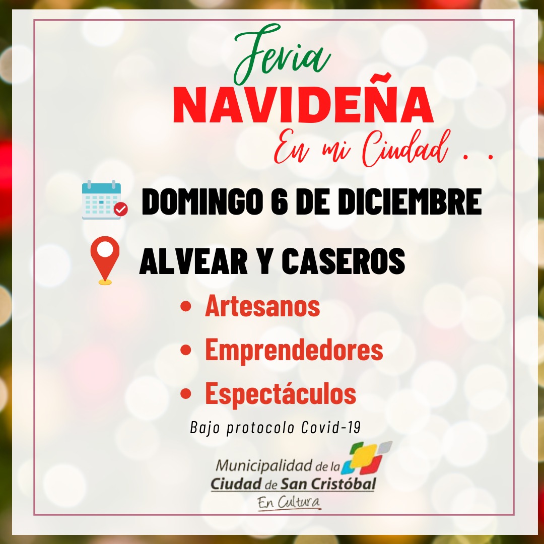 Se viene la Feria Navideña 2 diciembre, 20202 diciembre, 2020 Este Domingo se va a llevar a cabo esta actividad, ya tradicional en la ciudad, donde artesanos y vendedores locales tienen tiempo hasta mañana para inscribirse en el Liceo para tener un lugar el día Domingo.