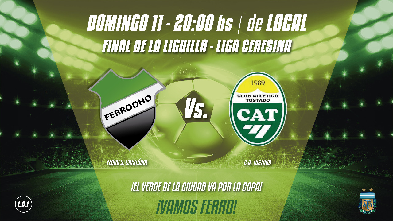 Se viene la final 9 noviembre, 2018 Ferro tiene todo listo para recibir al Club Atlético Tostado el domingo a partir de las 20hs., por la final de ida de la Liga Ceresina de fútbol.