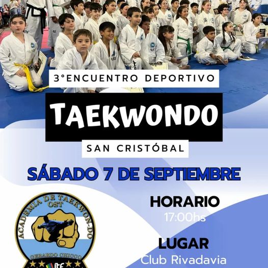 Taekwondo en San Cristóbal 6 septiembre, 2024 La Escuela Itf Ost local será local de un gran encuentro regional, este sábado en el Club Rivadavia BBC. Se invita a todo el público a acercarse a alentar por los competidores locales.