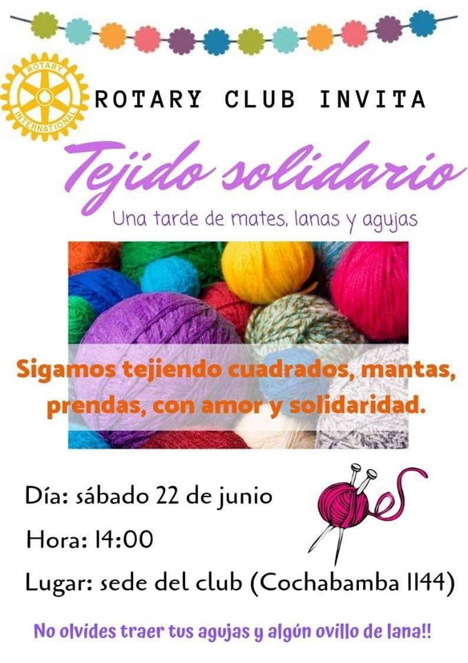 Tejido Solidario 21 junio, 2019 El Rotary Club de nuestra ciudad invita a la población a sumarse a un de las actividades tradicionales de esta institución, a desarrollarse mañana a partir de las 14hs, en la sede del club.