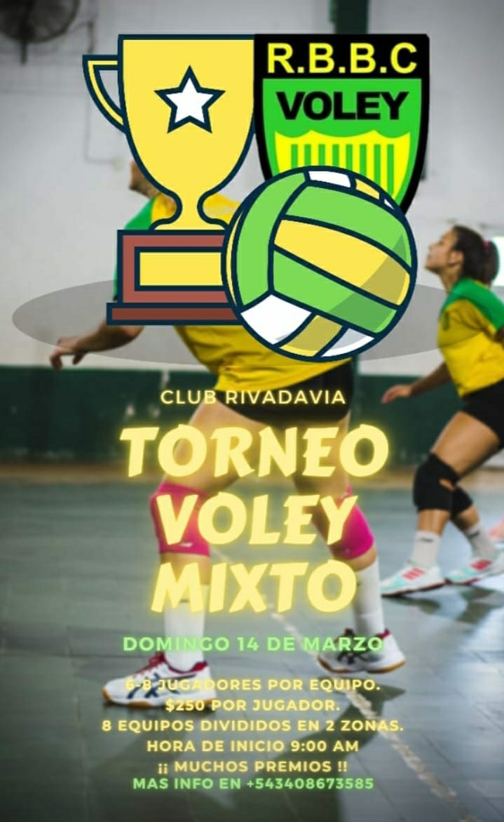 Torneo de vóley en Rivadavia BBC 11 marzo, 202111 marzo, 2021 Este fin de semana la gente del vóley del Rivadavia BBC organiza un torneo mixto para el día Domingo, ya sin cupos de inscripción pero con la invitación a la comunidad a disfrutar de la jornada.