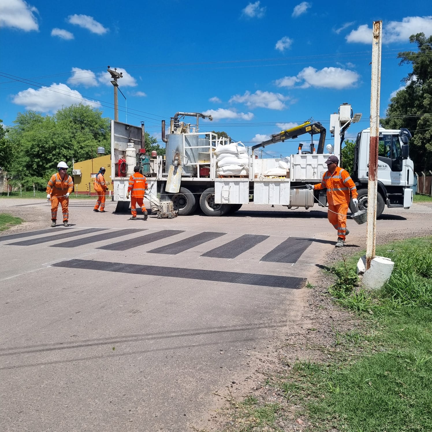 Con la presencia del Senador Felipe Michlig y del Diputado Marcelo González, la empresa Becha S.A. comenzó con los trabajos de marcación para la senda peatonal y señalización de las arterias.